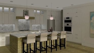 Our kitchens include stone countertops, wall oven and microwave, so you don't have to bend over to reach into the oven, ceramic cooktop and built-in overhead vent, wall mounted pot filler above cooktop so you don't have to carry heavy pots of water to the cooktop, double sinks in island and spray faucet, large fridge freezer with ice maker, dishwasher, task lighting, 4 foot clearance around the l